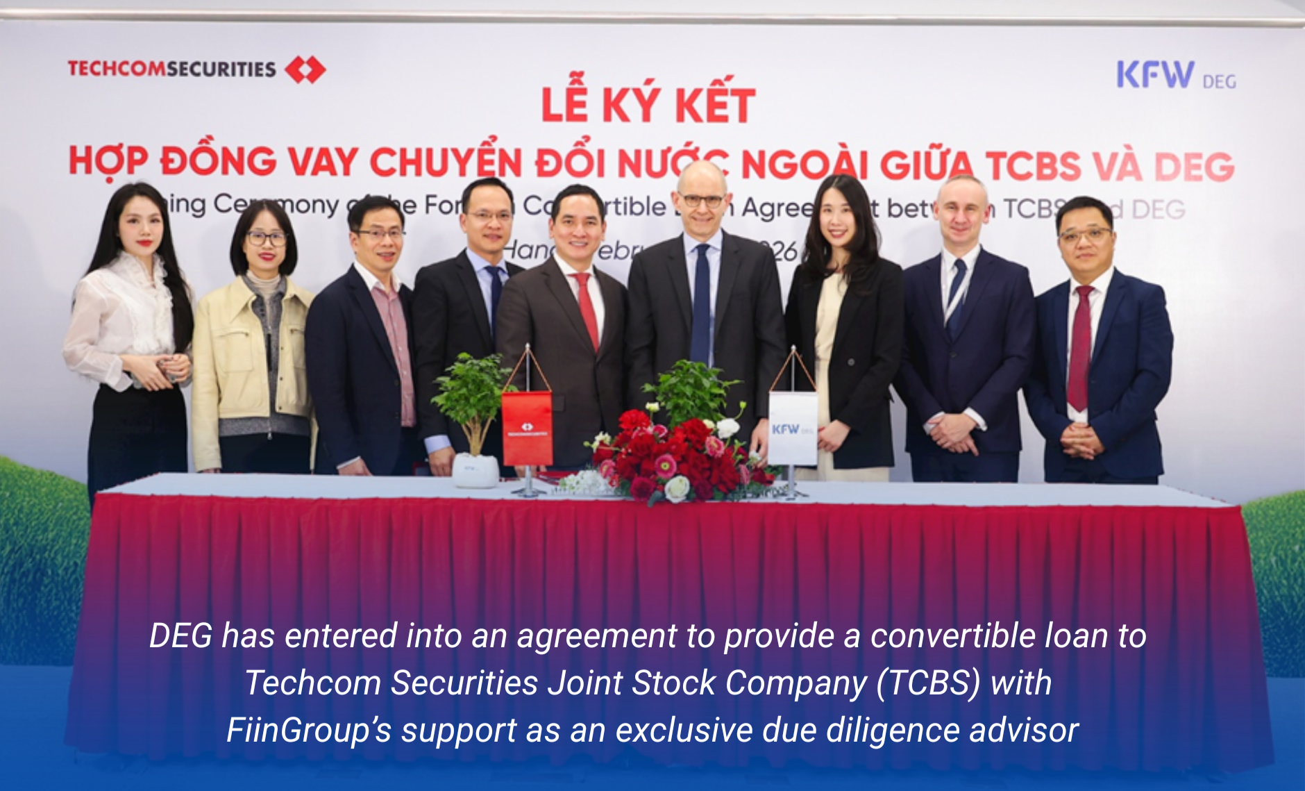 FiinGroup is pleased to announce that its client, DEG, a leading European development finance institution, has entered into an agreement to provide a USD 50 million convertible loan to Techcom Securities Joint Stock Company (TCBS), one of Vietnam’s leading securities service companies, on 2 February 2026.
