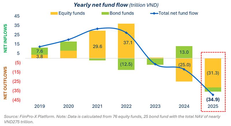 - Equity funds delivered solid average return in 2025, broadly in line with their medium- to long-term historical performance. However, it notably underperformed the VNINDEX, as market gains were concentrated in a limited number of large-cap stocks. Meanwhile, bond funds continued to post stable returns, largely tracking movements in deposit interest rate.