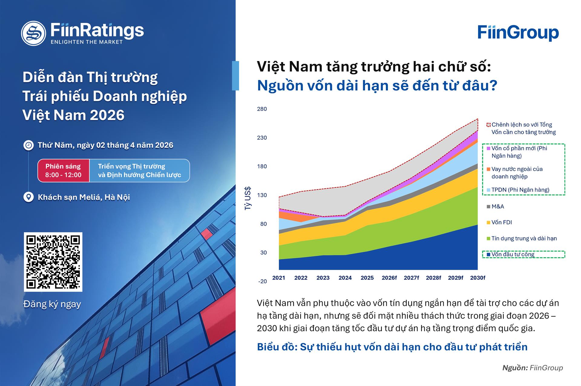 Những vấn đề này sẽ được các chuyên gia trong nước và quốc tế và các thành viên thị trường cùng nhà hoạch định chính sách thảo luận tại Diễn đàn Thị trường Trái phiếu Doanh nghiệp Việt Nam 2026- sự kiện doS&P Global Ratings, FiinRatings và FiinGroupphối hợp tổ chức tại Hà Nội.