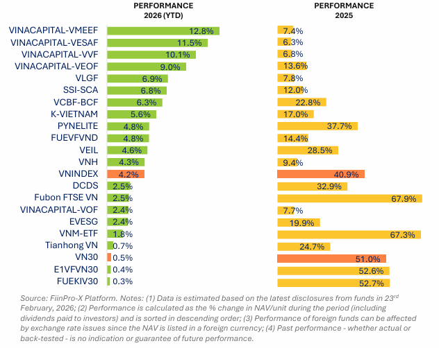 Figure 1: Since the start of 2026, open-ended equity funds have outperformed the VNINDEX